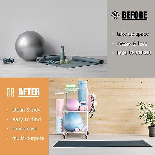 MULTI-PURPOSE STORAGE RACK: This workout storage organizer can help to store your yoga mat, dumbbells, kettlebells, yoga brick, resistance band,roller wheel, foam roller etc. Makes your room clean and tidy, perfect for bodybuilders