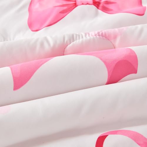 Unique Design: Brighten your room with the enchanting design of the pink bow comforter set. This comforter features some pink bows printed on white, for a vibrant and cute look. The matching sheet set also showcase the cute pink bow knots print to coordinate with the pink bow comforter.