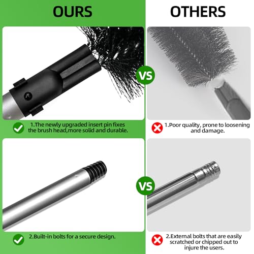 Safer Groove Brushes: The brush head is upgraded to have a locking pin, which will be more firm, will not loosen and can withstand force, so there’s no danger of bolts falling out, safety is at the heart of our tool design.so you can clean your house without the need for a ladder