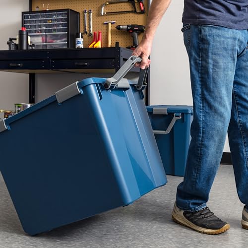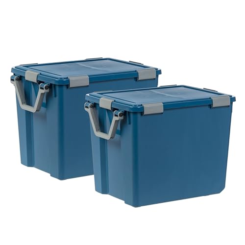 IRIS USA WeatherPro 103 Qt Eco-Friendly Storage Bins with Lids, 2 Pack, BPA-Free Plastic Gasket Box with Tight Latch and Seal, Stackable Nestable Tote Tub – Navy
