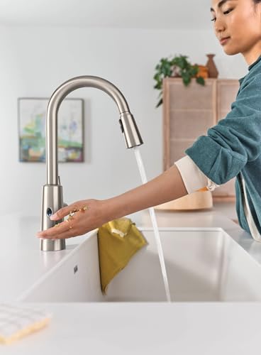 Moen Riley Spot Resist Stainless Hands-Free Touchless Sensor Single Handle Pull Down Kitchen Faucet, 7402EWSRS