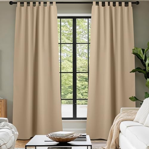 NICETOWN 2 Panels Outdoor Curtains for Patio Waterproof 84″ Long, Detachable Sticky Tab Top Thermal Insulated Privacy Sun Blocking & UV Protection Drapes for Porch/Pergola, Biscotti Beige, W52 x L84